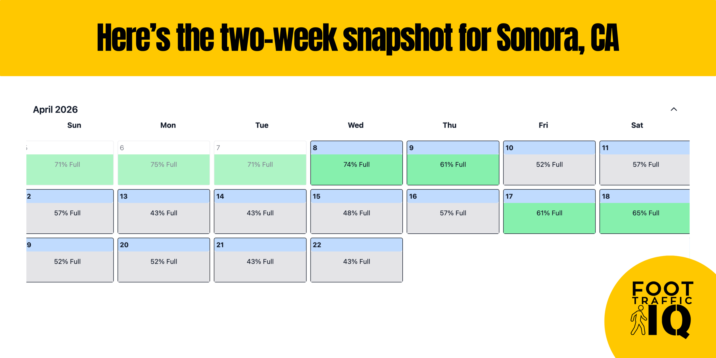 Foot traffic IQ shows you how busy your area expected to be based on real travel and booking data.